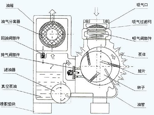 2、在XD型旋片式真空泵的內部裝有油霧消除器,能有效地消除泵排出的氣體中的油霧,避免油霧對周圍環境的污染。