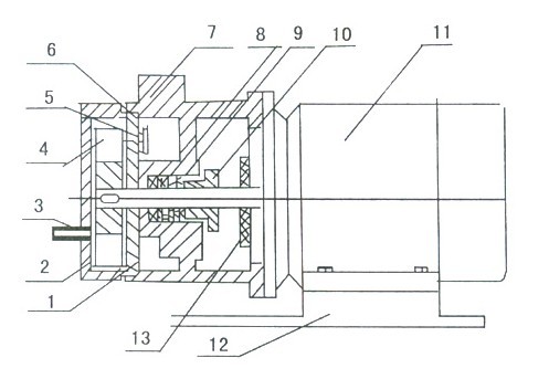 SK型直聯水環式真空泵的結構如圖(1)所示:主要是由泵蓋、葉輪、泵體組成,泵體上部有進排氣口法蘭,軸偏心裝在泵體內,葉輪用平鍵固定于軸上,葉輪與泵蓋及圓盤間的間隙,用泵體和圓盤之間間的墊子來調整,此間隙決定氣體在泵內由進氣口至排氣口流動中損失的大小。