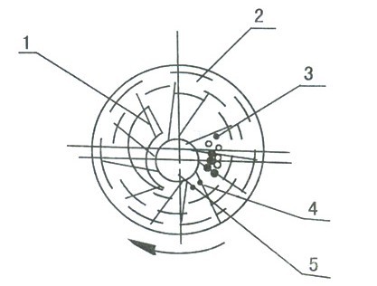 圖(2)SK型直聯水環式真空泵的工作原理圖