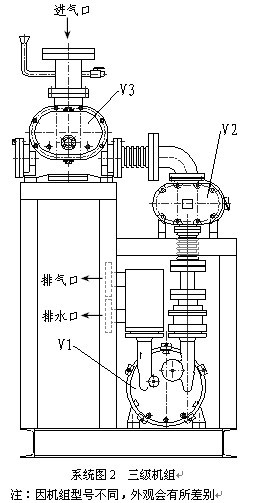 (二)、三級羅茨水環(huán)真空機組(羅茨泵+羅茨泵+水環(huán)泵)