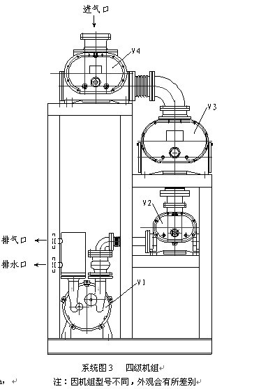 (三)、四級羅茨水環(huán)真空機組(羅茨泵+羅茨泵+羅茨泵+水環(huán)泵)