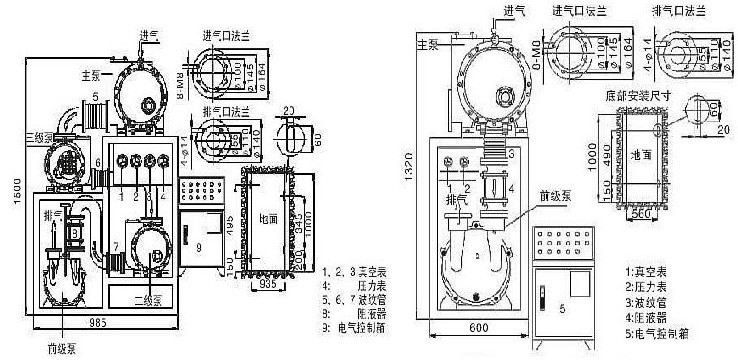 | 三、JZJBA系列羅茨水環(huán)真空機組的外形及安裝尺寸圖: |