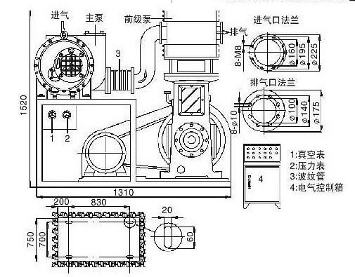 六、JZJW系列羅茨無油往復真空機組結構圖: